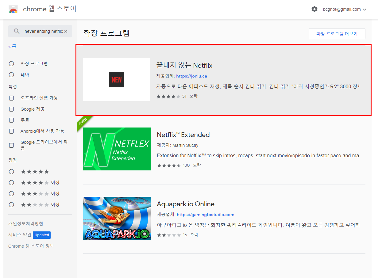 바로 never ending netfilx라는 확장 프로그램을 깔아야 합니다.